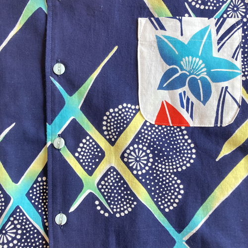 藍色に黄色のきらめき浴衣地アロハシャツです。