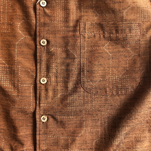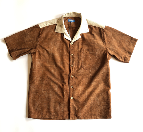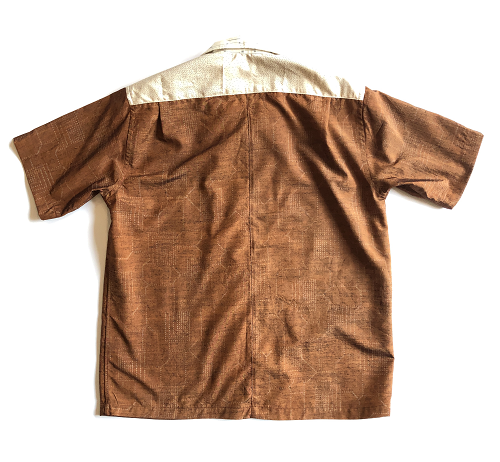 柿色とアイボリーの紬地アロハシャツです。