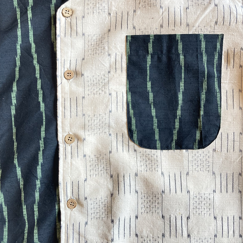 古着物が「着る物」として流通しなくなったと着物のリサイクルショップをする友人から聞き、シャツにしたら着れるかなと思い始めました。