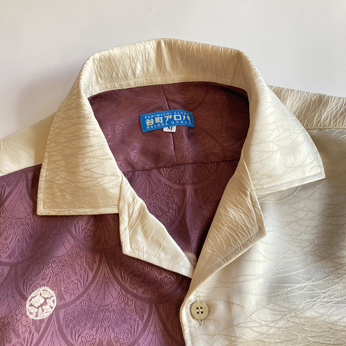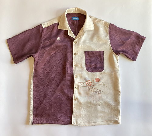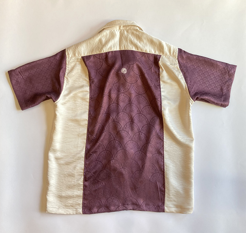 アイボリーと紫鱗模様綸子地アロハシャツです。